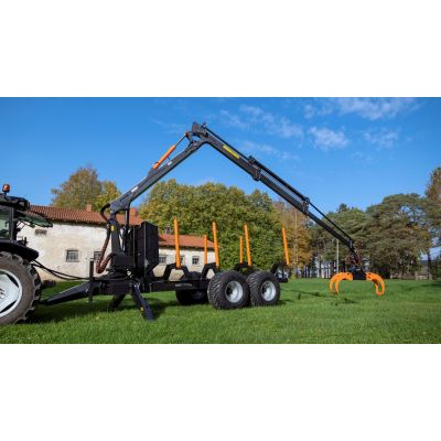 The BMF850 is a far-reaching log crane with a wide-angle joint, double telescope, and a maximum reach of 8.5 metres. Built for demanding forestry work, it combines strong lifting power with tough construction and carefully selected components for long-lasting performance.