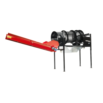 The Hakki Pilke Cleaner, electric-powered, makes cleaning your firewood effortless. By speeding up the drying process, it ensures consistent quality. The outfeed conveyor transports the firewood to the rotating drum, which separates debris and moves the clean firewood to the desired location using guide plates. From there, the firewood can be conveyed into wholesale sacks with the standard guide plate.