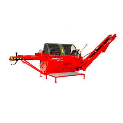 The 50 Pro is so efficient at sawing and splitting that it's practically a one-man firewood factory. Featuring several innovative features, this machine is designed to maximize productivity and simplify your work. The HakkiCut™ sawing interface offers easy, ergonomic operation, where sawing is initiated at the touch of a button, and splitting and log infeed are controlled via joystick. During sawing, the cutting blade automatically adjusts its descent speed based on resistance, ensuring fast, efficient cuts.
