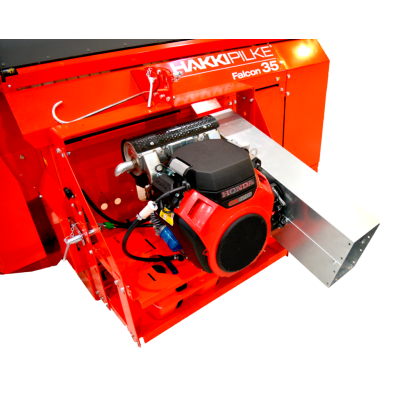 The Hakki Pilke Power Unit with direct coupling installation eliminates the need for a PTO shaft, transmitting engine power directly to the machine via the hydraulic pump, which reduces fuel consumption. The power take-off can still be used after disconnecting the power unit. It comes with a 12V 3-pin electrical connection and is compatible with the Raven 33, Falcon 35, 38 Pro, 43 Pro, and 50 Pro models.