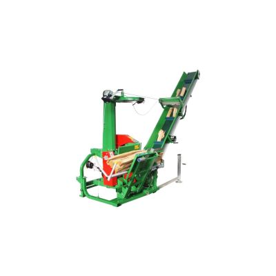 The THOR Saw Bench (TANDEM Model-VPF) with Widia saw blade and 4 m conveyor belt is designed for efficient firewood processing with reliable handling and smooth material flow. The conveyor opens to 4 metres with an optional 45° inclination, reaching a loading height up to 2.40 m for easy stacking. It uses a 25 cm wide double-ply PVC belt with 6 cm vulcanised blades, plus an upper tow mat for stronger pull and consistent feeding. The belt is driven from above by a hydraulic motor, with steady speed as standard and an adjustable speed option available. Conveyor positioning and extraction are managed via two manual winches, with cut adjustment and a removable cut conveyor for practical setup. Handling and placement are supported via Cat. 1–2 3-point linkage or lifting hooks.